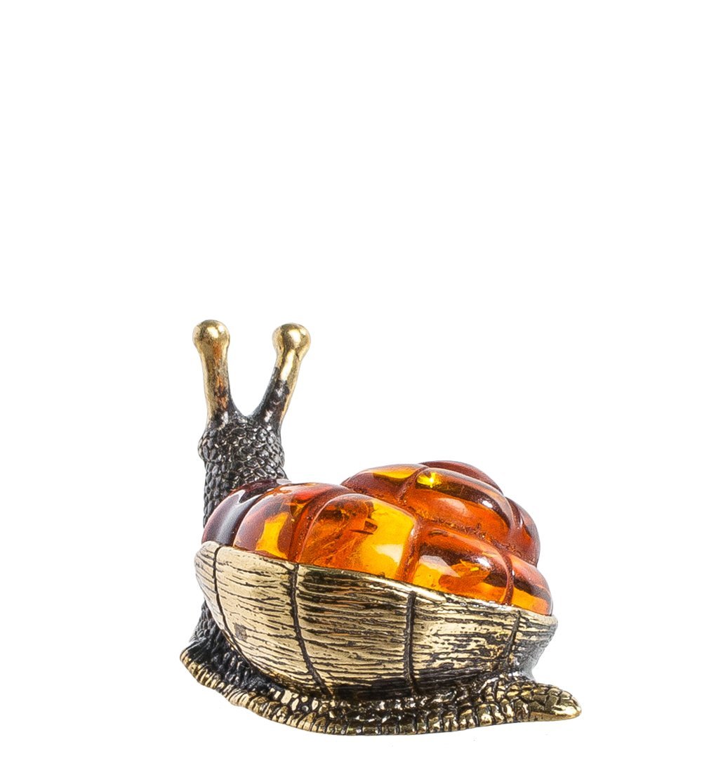 AM-1351 Фигурка «Улитка с домиком» (латунь, янтарь)