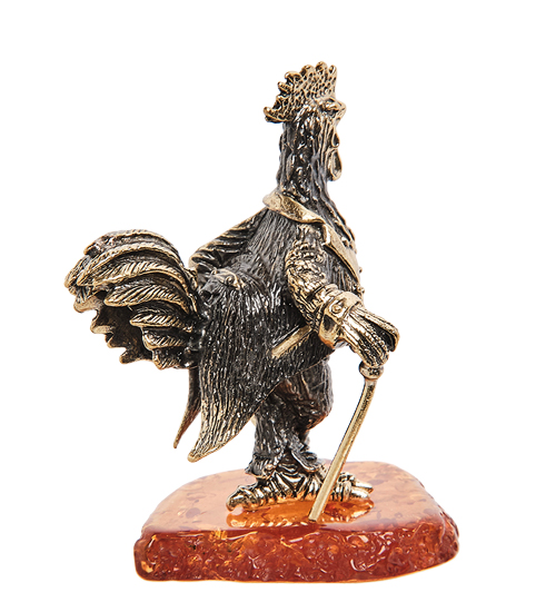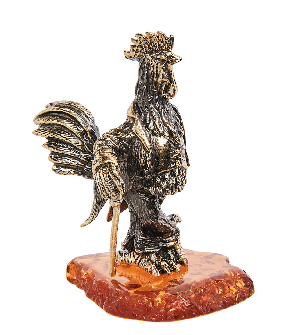 AM-1374 Фигурка «Петух с тростью» (латунь, янтарь)