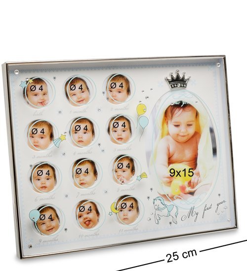 Фоторамка для мальчика с подставкой для 12 фотографий диаметром 4 см и одной большой 9х15 см.