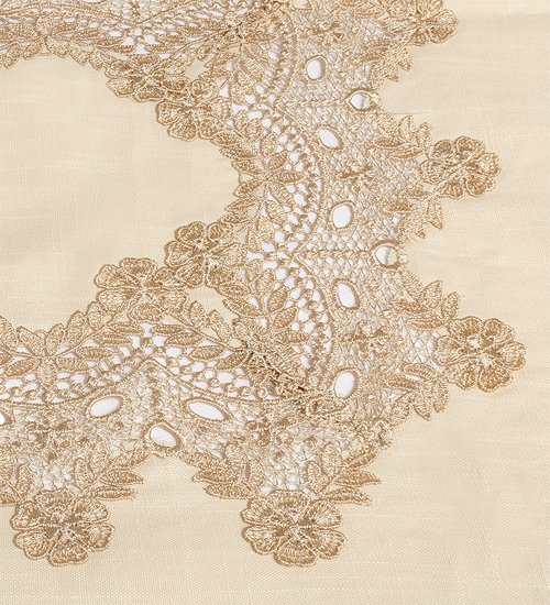 Скатерть квадратная с ажурным кружевом машинного вязания. Цвет - капучино. Кружевом на тон темнее выложено в центре скатерти в виде ажурной салфетки и обшито по краю.