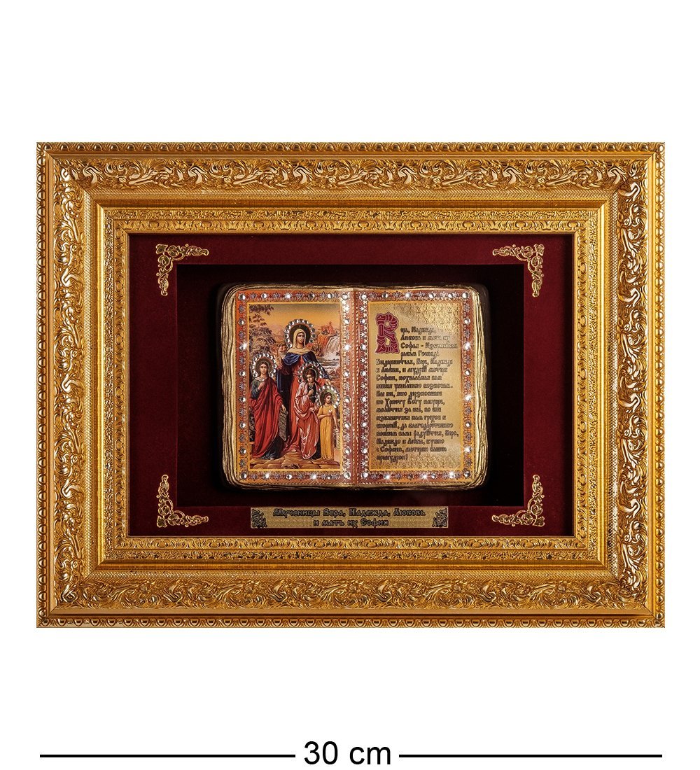 Панно представлено в деревянной раме. На флокированной бумаге в центре панно объёмная раскрытая книга. На страницах книги иконная роспись и молитва. Под книгой название изделия. Сверху на панно защитное стекло.