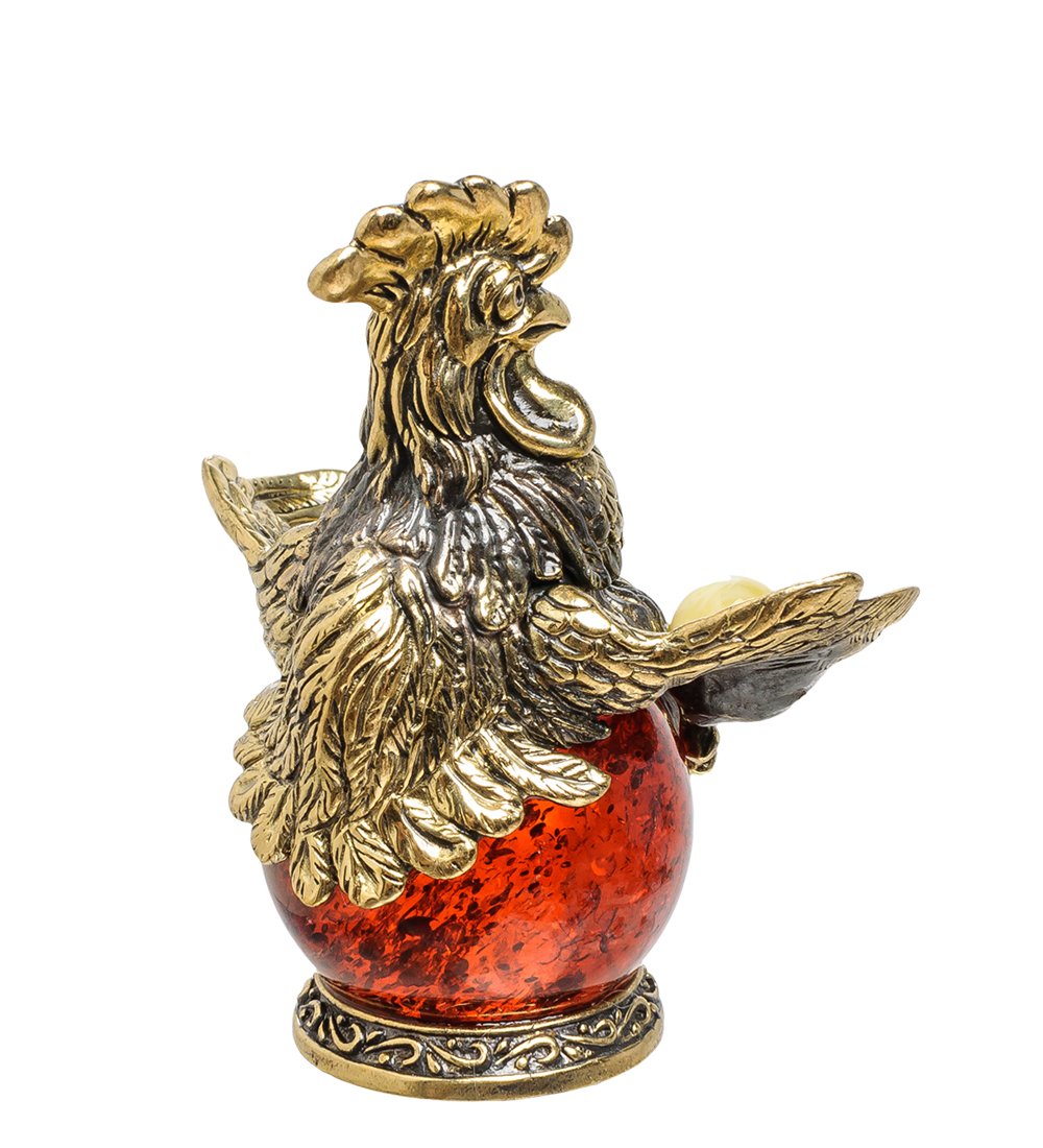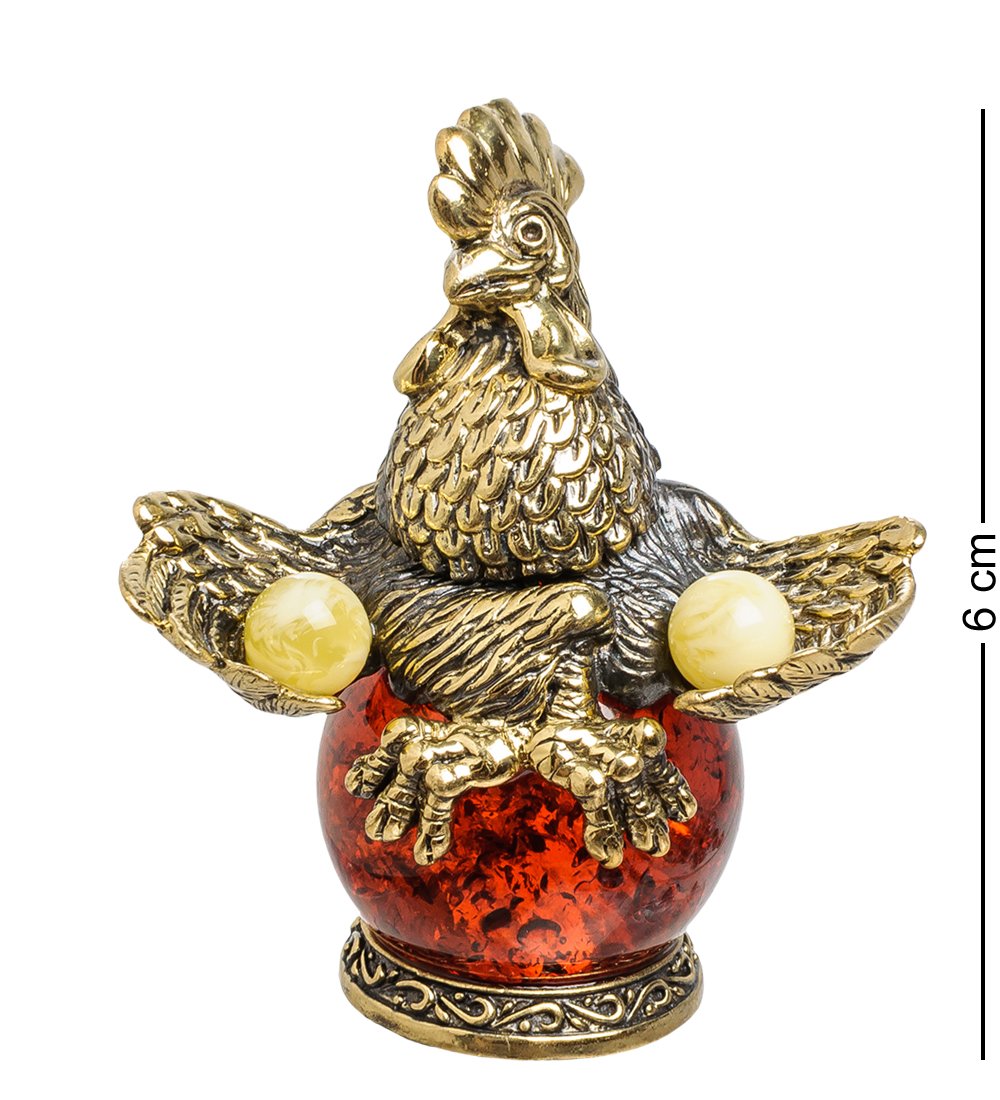AM-1476 Фигурка «Петух на шаре» (латунь, янтарь)