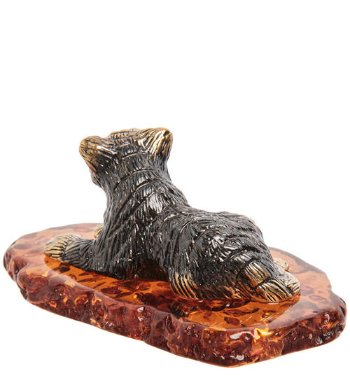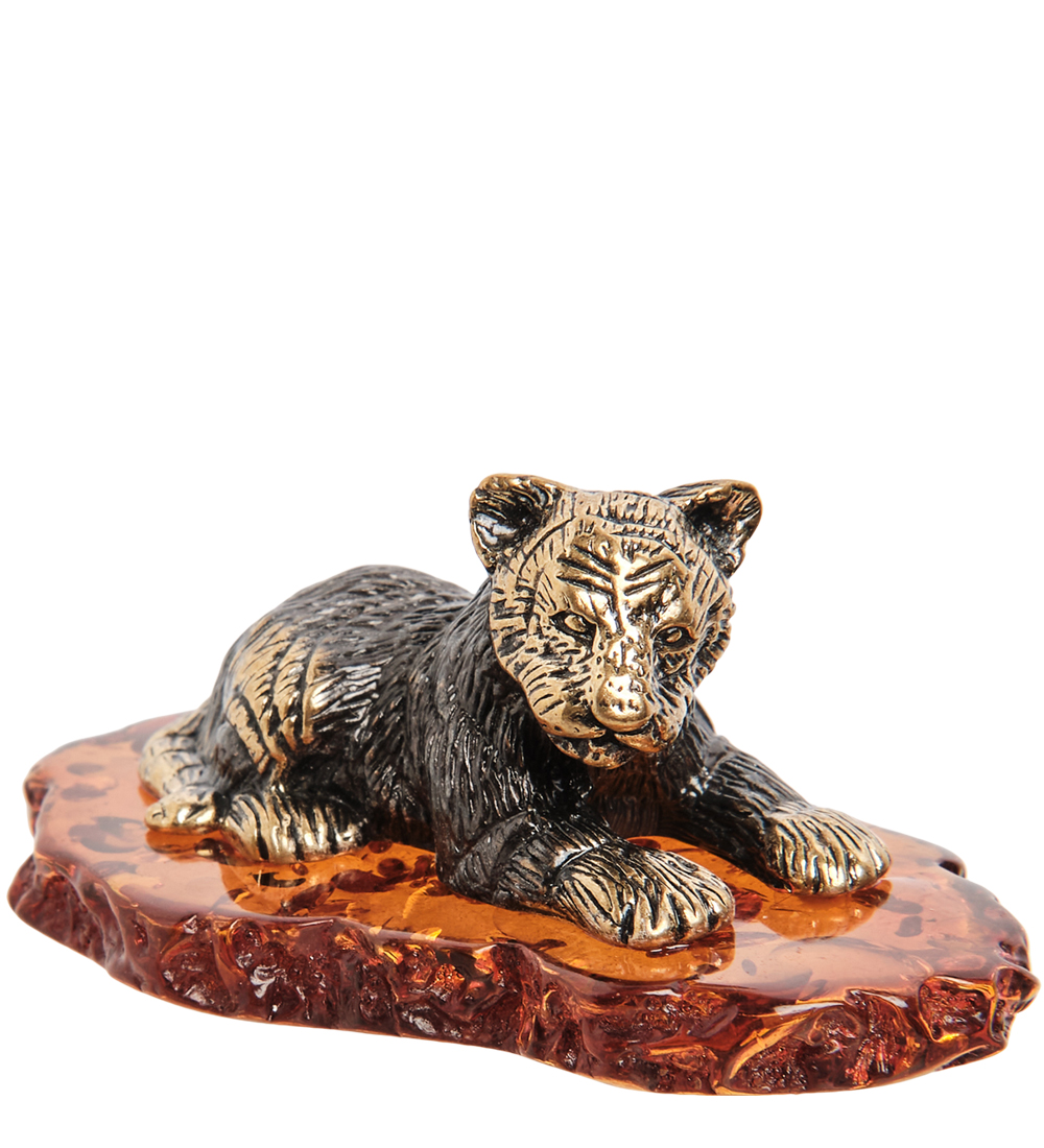 AM-1569 Фигурка «Тигренок лежащий» (латунь, янтарь)