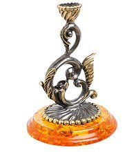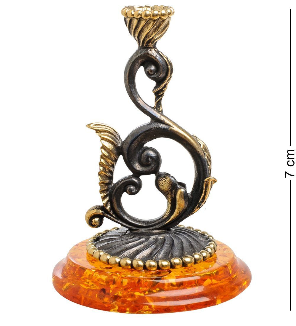 AM-1584 Подсвечник «Ажурный» (латунь, янтарь)