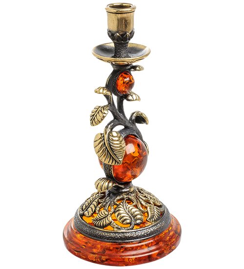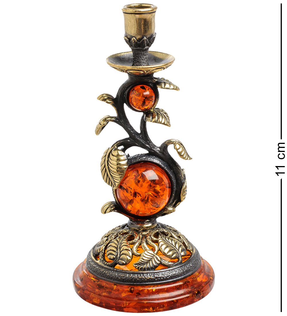 AM-1585 Подсвечник «Лоза» (латунь, янтарь)