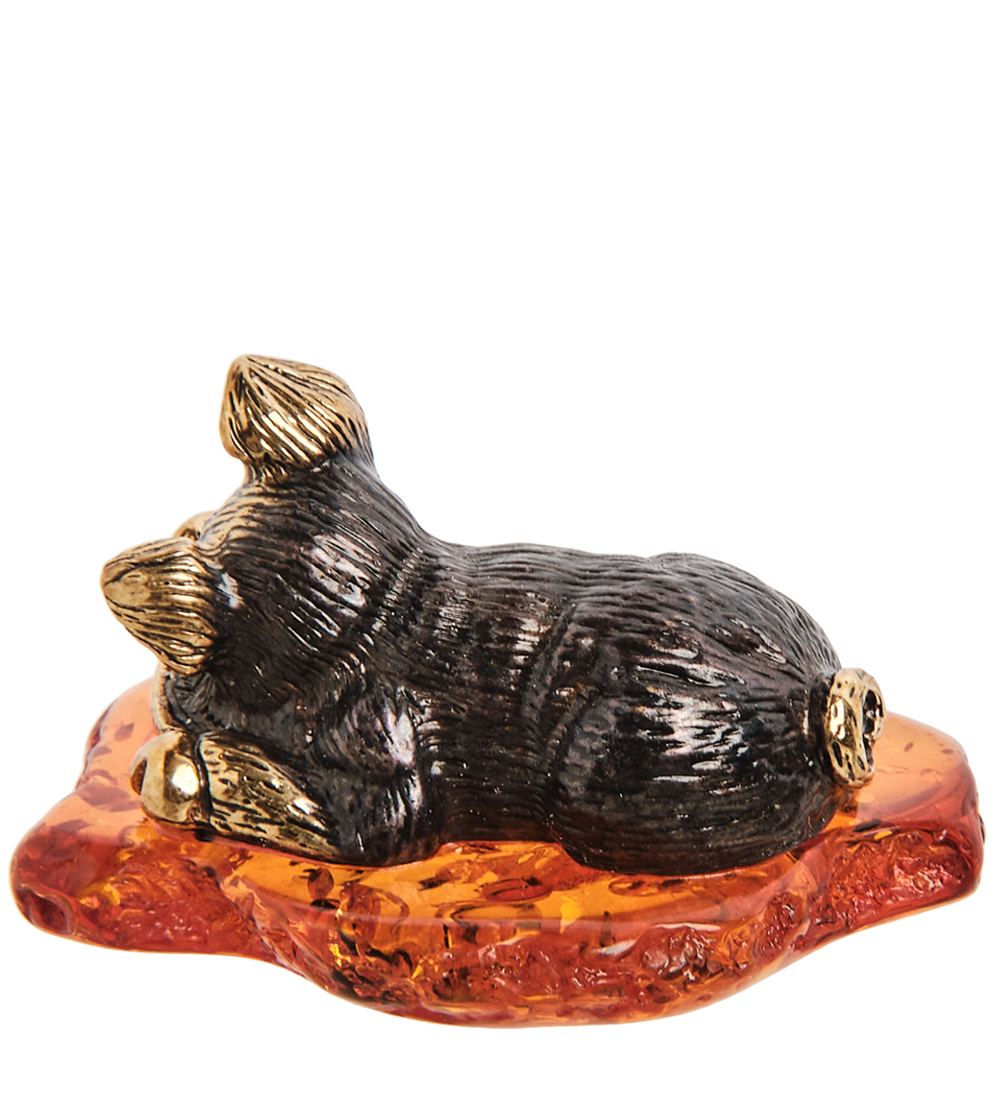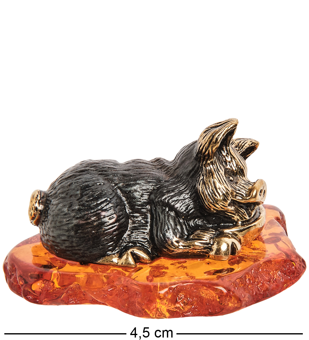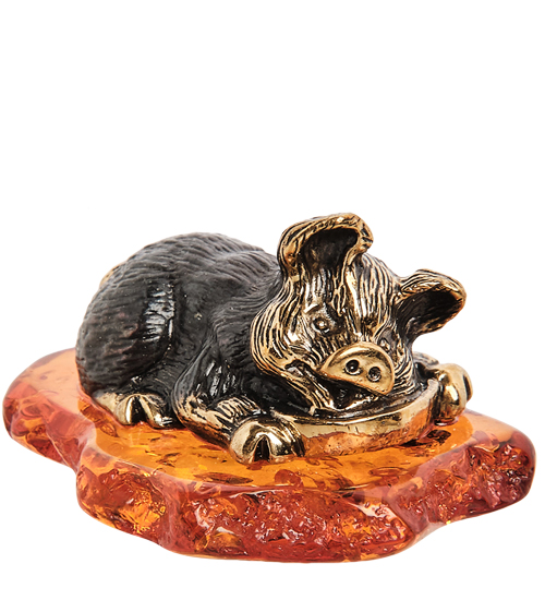 AM-1592 Фигурка «Поросенок обжора» (латунь, янтарь)