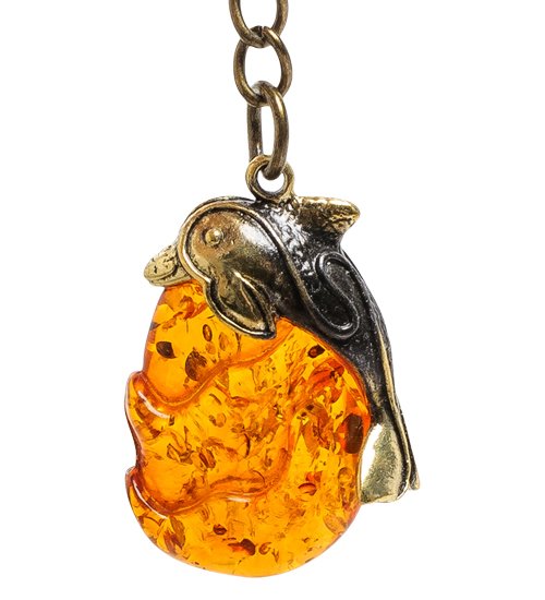 AM-1593 Брелок «Дельфинчик» (латунь, янтарь)