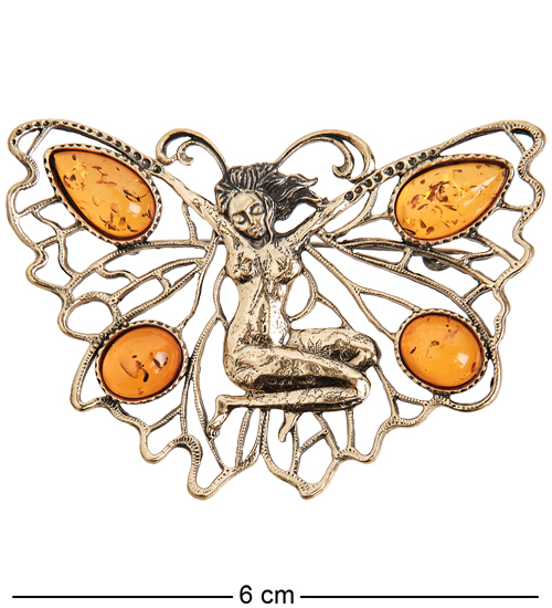 AM-1655 Брошь «Бабочка Спящая фея» (латунь, янтарь)
