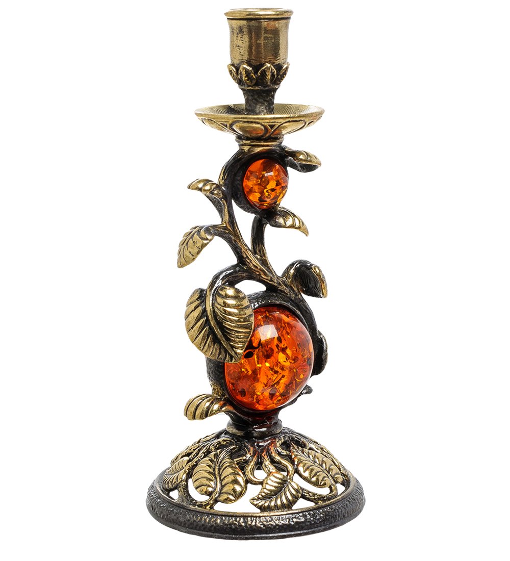 AM-1781 Подсвечник «Лоза» (латунь, янтарь)