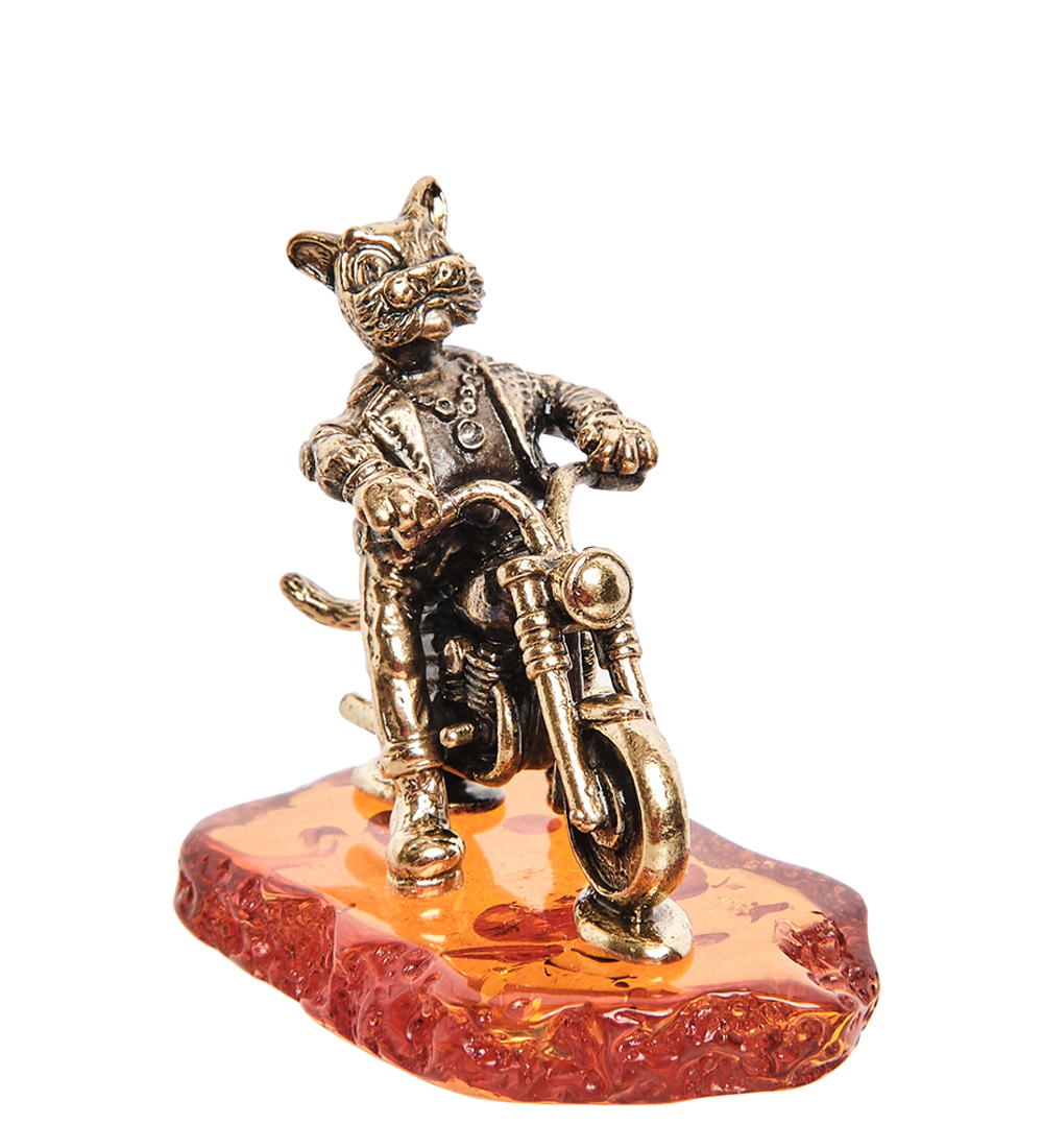 AM-1790 Фигурка «Кот байкер» (латунь, янтарь)
