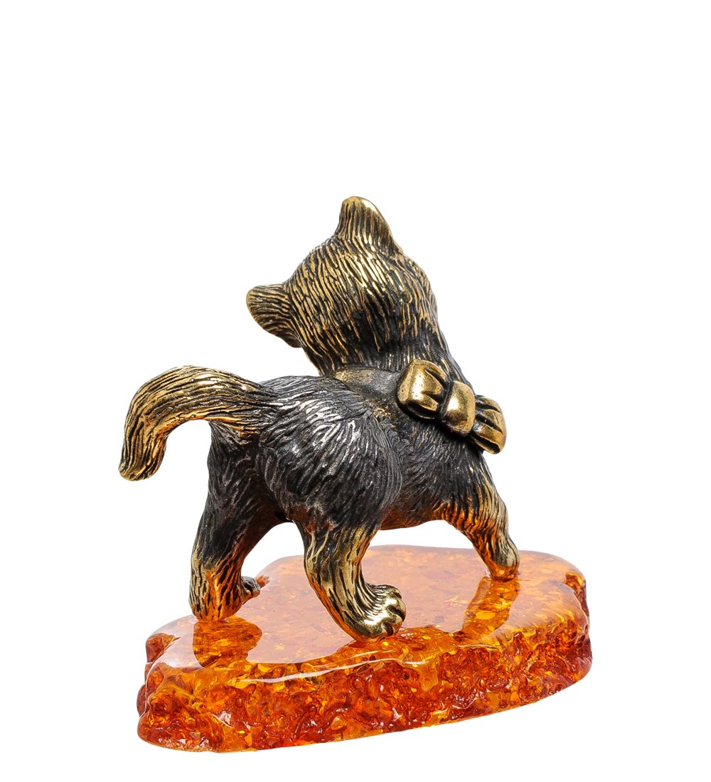 AM-1809 Фигурка «Котик игривый с бантиком» (латунь, янтарь)