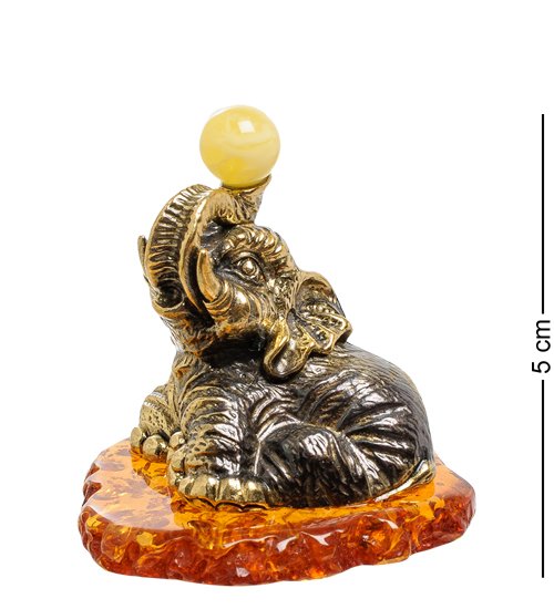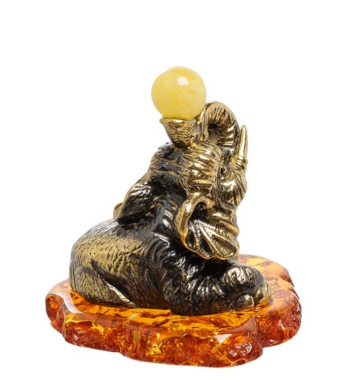 AM-1824 Фигурка «Слон с шаром» (латунь, янтарь)