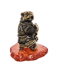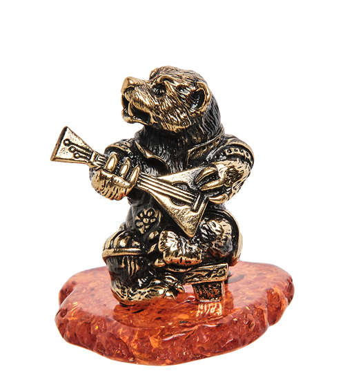 AM-1836 Фигурка «Медведь музыкант» (латунь, янтарь)