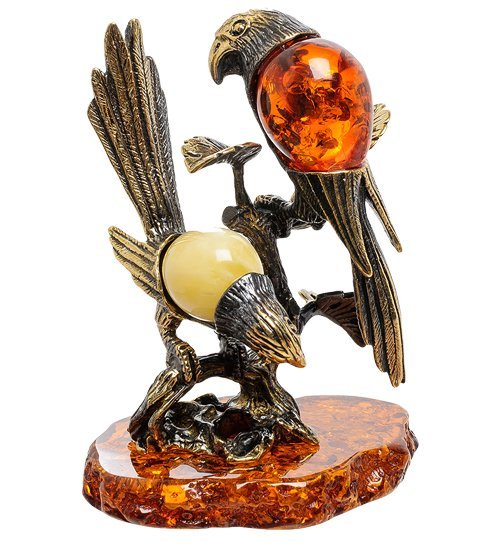 AM-1852 Фигурка «Попугаи» (латунь, янтарь)