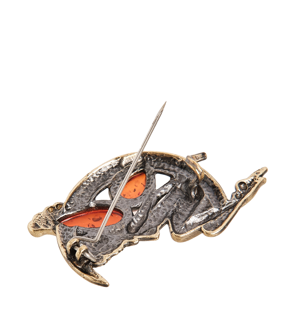 AM-2038 Брошь «Фея на луне» (латунь, янтарь)