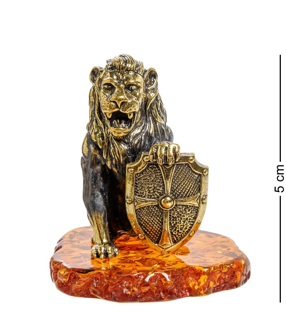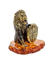 AM-2049 Фигурка «Лев со щитом» (латунь, янтарь)