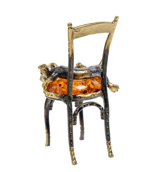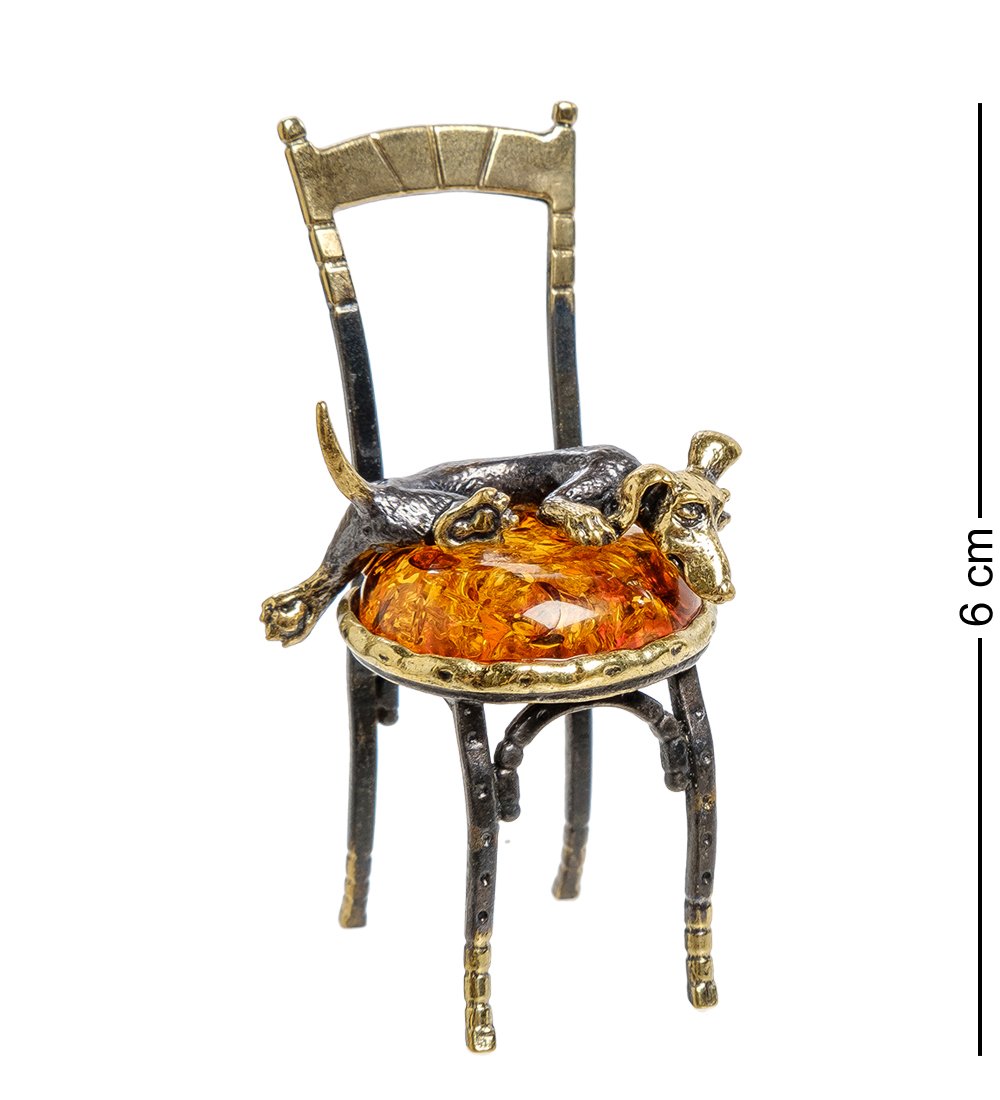 AM-2062 Фигурка «Такса на стуле» (латунь, янтарь)