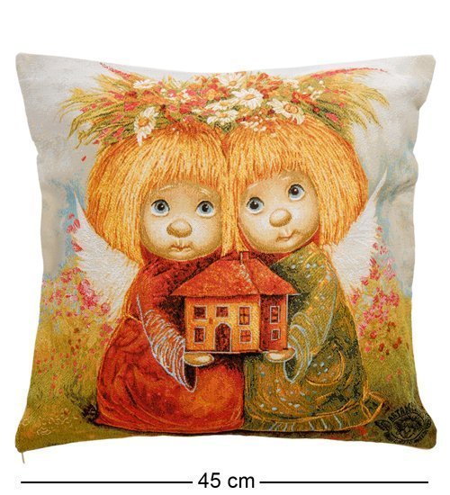 ANG-261/1 Подушка гобеленовая «Ангелы хранители дома» 45х45