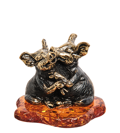 AM-2178 Фигурка «Поросята» (латунь, янтарь)