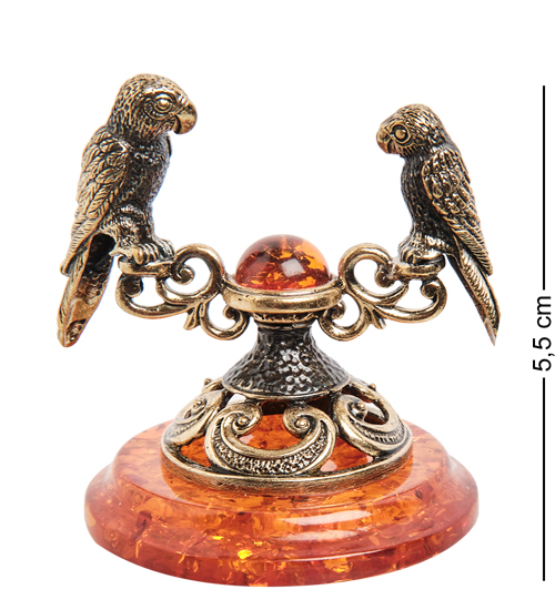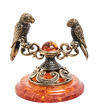 AM-2180 Фигурка «Попугаи Лоро парк» (латунь, янтарь)