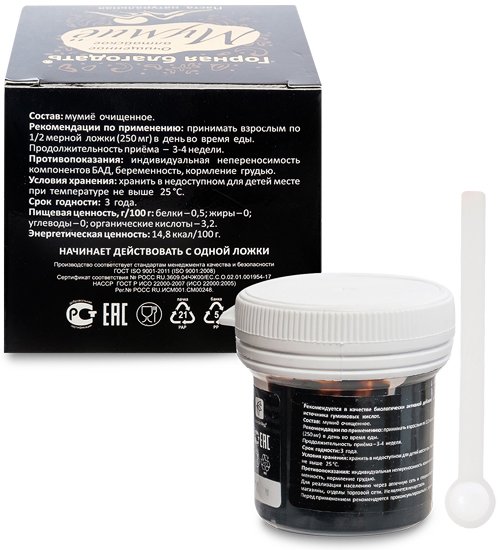 Состав: мумиё алтайское очищенное.