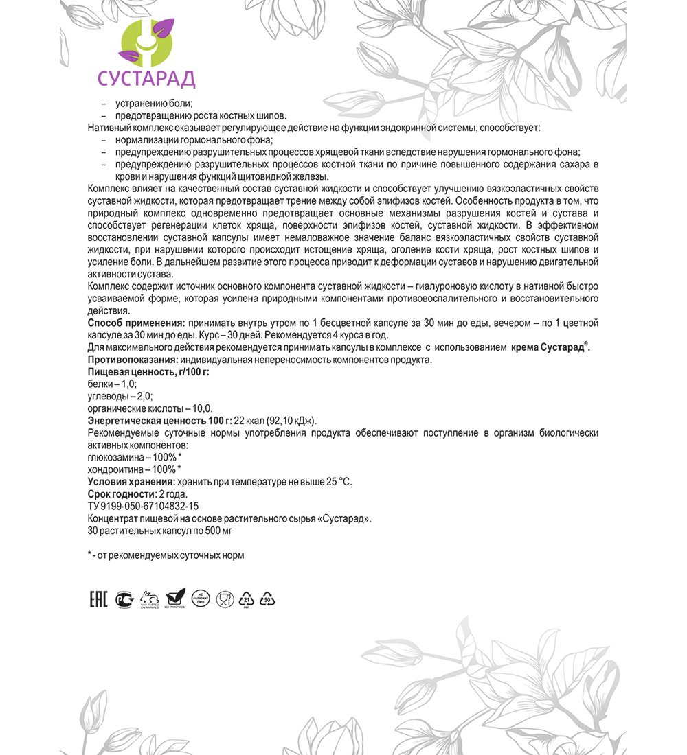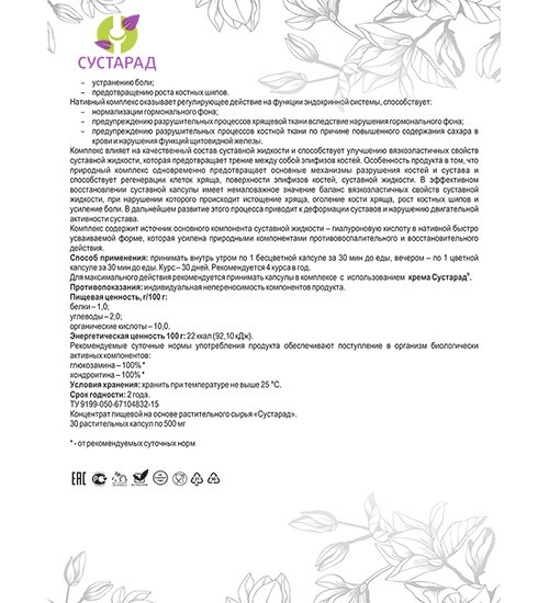 Для максимального действия рекомендуется принимать капсулы в комплексе с использованием крема «Сустарад».