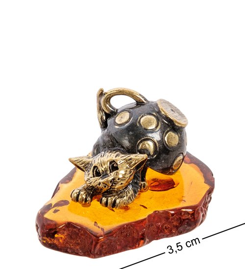 AM-2226 Фигурка «Котик под чашкой» (латунь, янтарь)