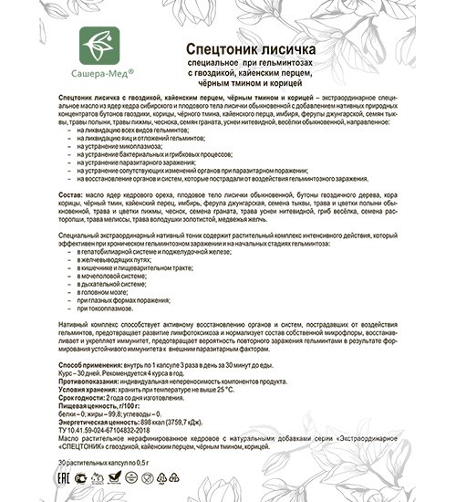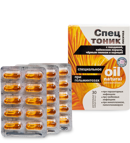 MED-14/02 «Спецтоник» Капсулы с лисичкой при гельминтозах, №30*0,5 г, блистер