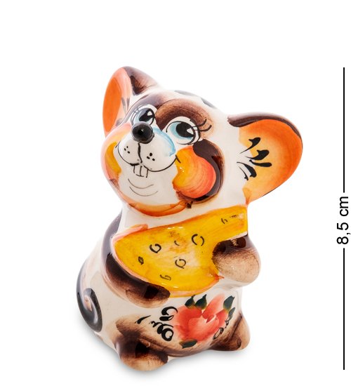ГЛ- 543 Фигурка «Мышь с сыром» бол. цв. (Гжельский фарфор)