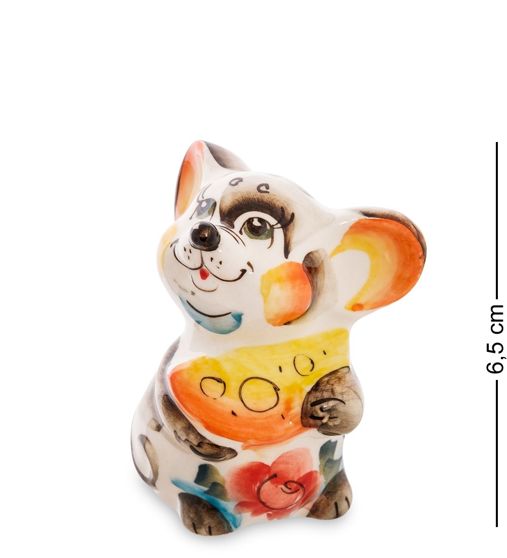 ГЛ- 551 Фигурка «Мышь с сыром» ср. цв. (Гжельский фарфор)