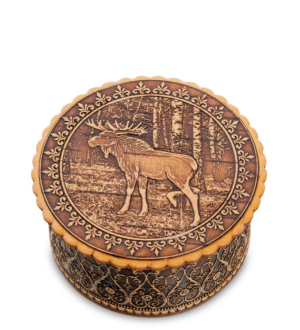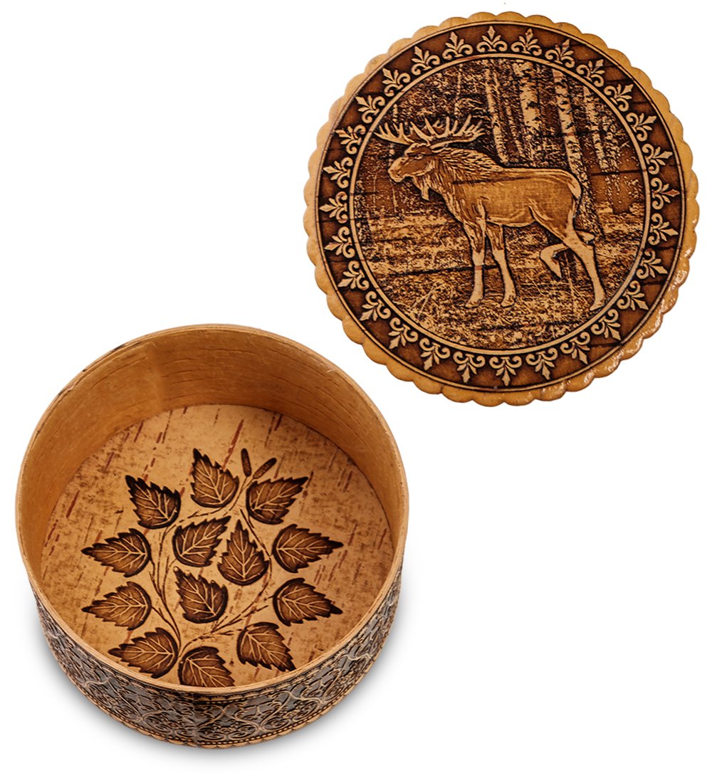 BST-104/ 1 Шкатулка «Лось» круглая (береста)