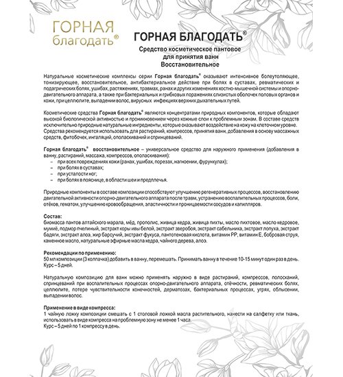 MED-04/06 «Горная благодать» Средство косметическое пантовое, восстановительное, 100 мл