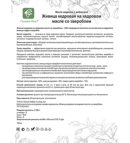 MED-09/12 «Живица кедровая на кедровом масле» Со зверобоем, 100 мл