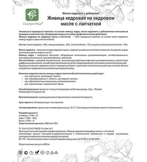 MED-09/20 «Живица кедровая на кедровом масле» Капсулы с лапчаткой, №30*0,5 г, блистер