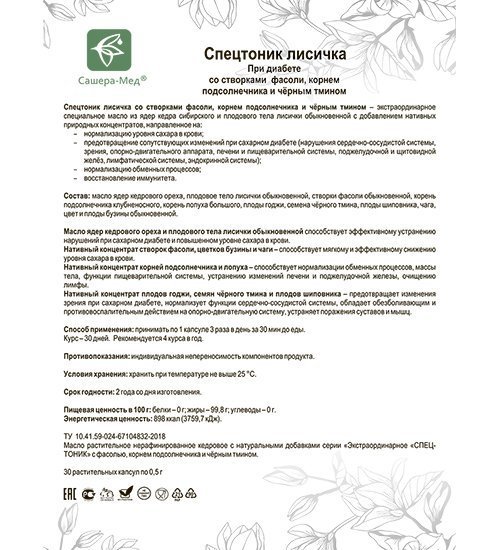 MED-14/13 «Спецтоник» Капсулы лисичка со створками фасоли, №30*0,5 г, блистер