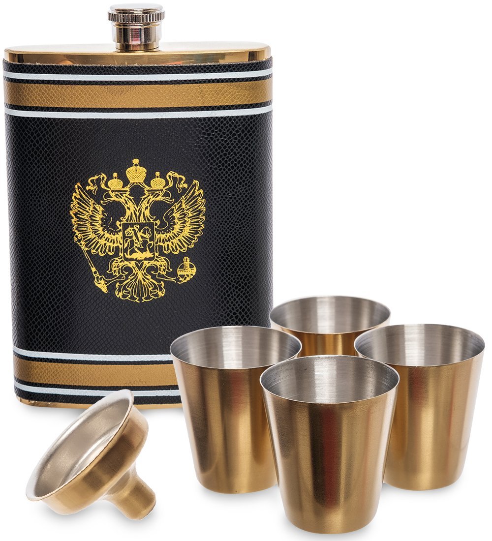 GT-76 Подарочный набор фляжка 200 мл со стопками «Герб»