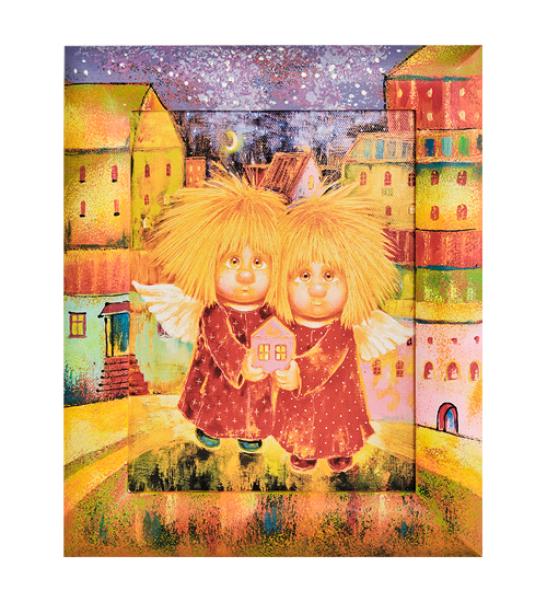 ANG-1492 Жикле в раме «Ангелы домашнего очага» 18х24