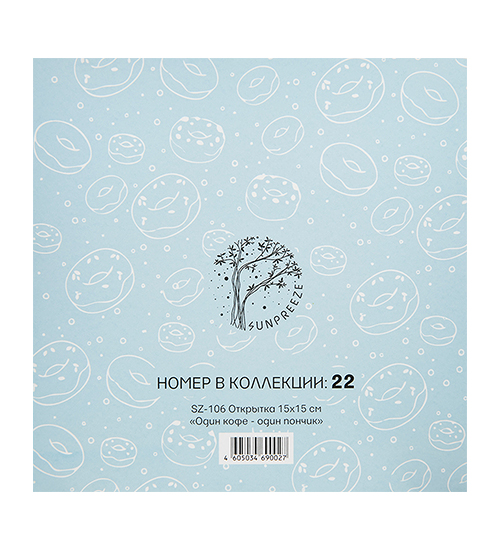 SZ-106 Открытка «Один кофе - один пончик» 15х15