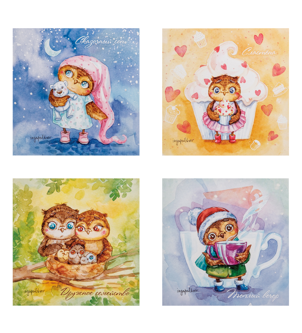 SZ-280 Набор открыток художницы Инги Пальцер 10x10см (4шт)