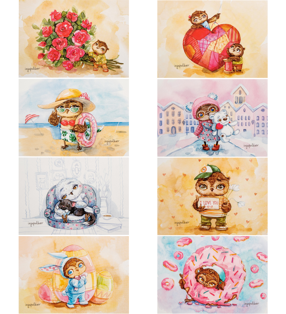 SZ-282 Набор открыток художницы Инги Пальцер 10x10см (8шт)