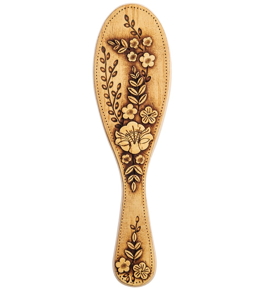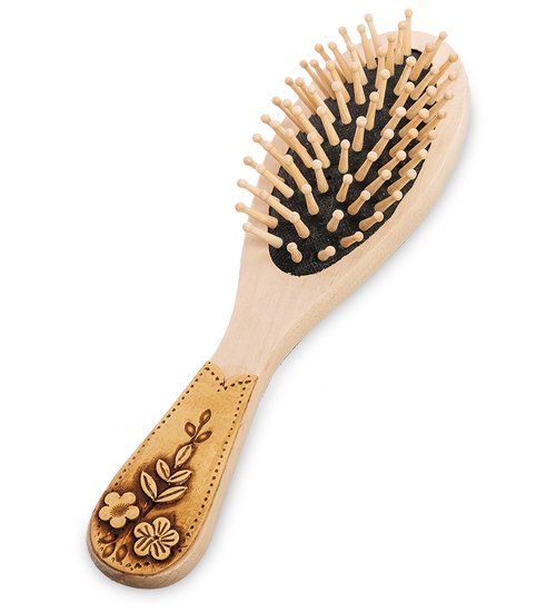 BST-327/4 Массажная расческа деревянная «Полевые цветы» (береста)