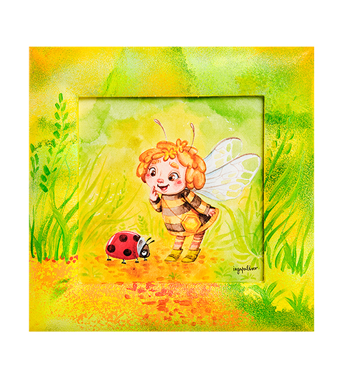 SZ-407 Жикле в расписной раме «Удачливая пчелка» 16х16