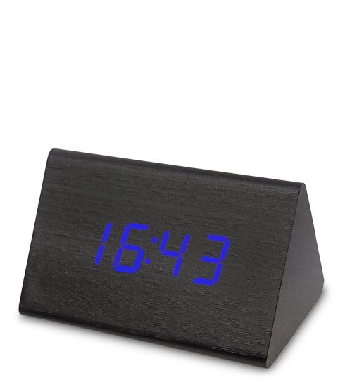 ЯЛ-07-07/ 3 Часы электронные треуг.сред. (чёрное дерево с синей подсветкой)