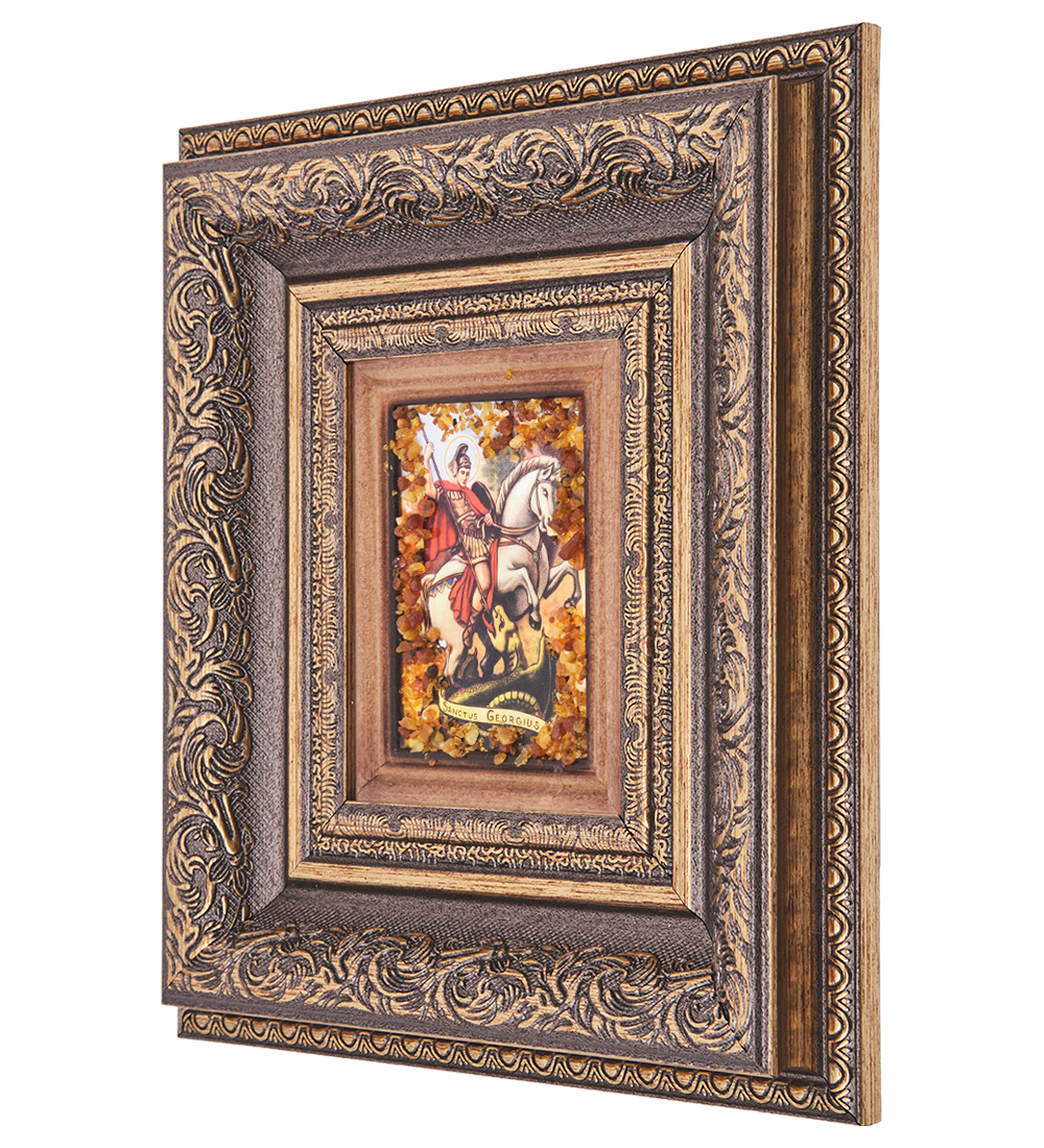 AMB-05/ 2 Икона «Святой Георгий» (с янтарной крошкой) H-22см