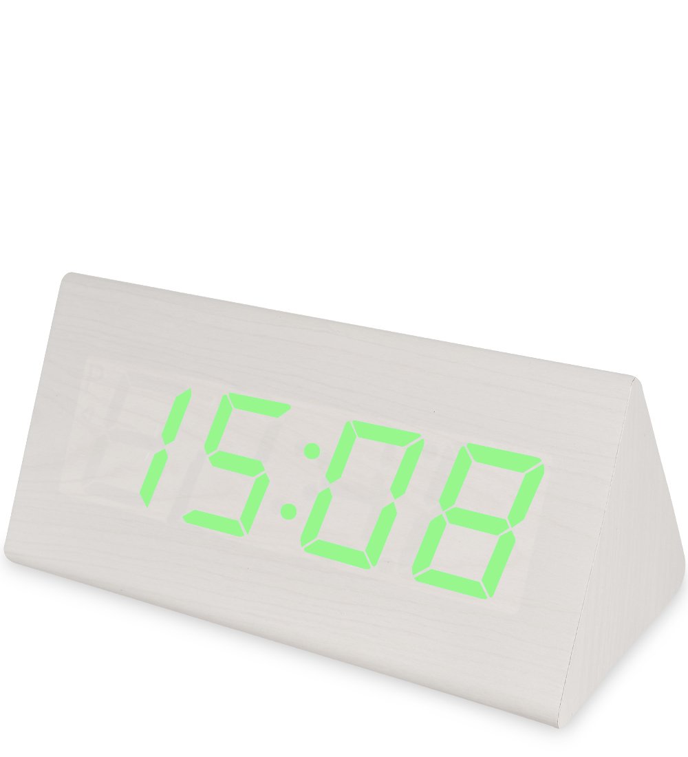 ЯЛ-07-21/11 Часы электронные бол. треугольные (белые с зеленым циферблатом)