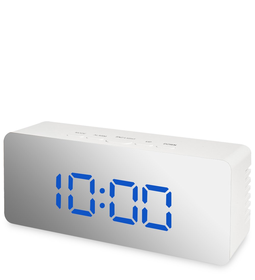 ЯЛ-07-23/ 2 Часы электронные мал. зеркальные (белые с синим циферблатом)