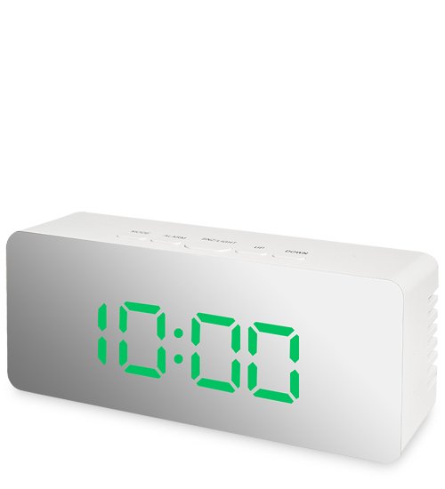 ЯЛ-07-23/ 3 Часы электронные мал. зеркальные (белые с зеленым циферблатом)