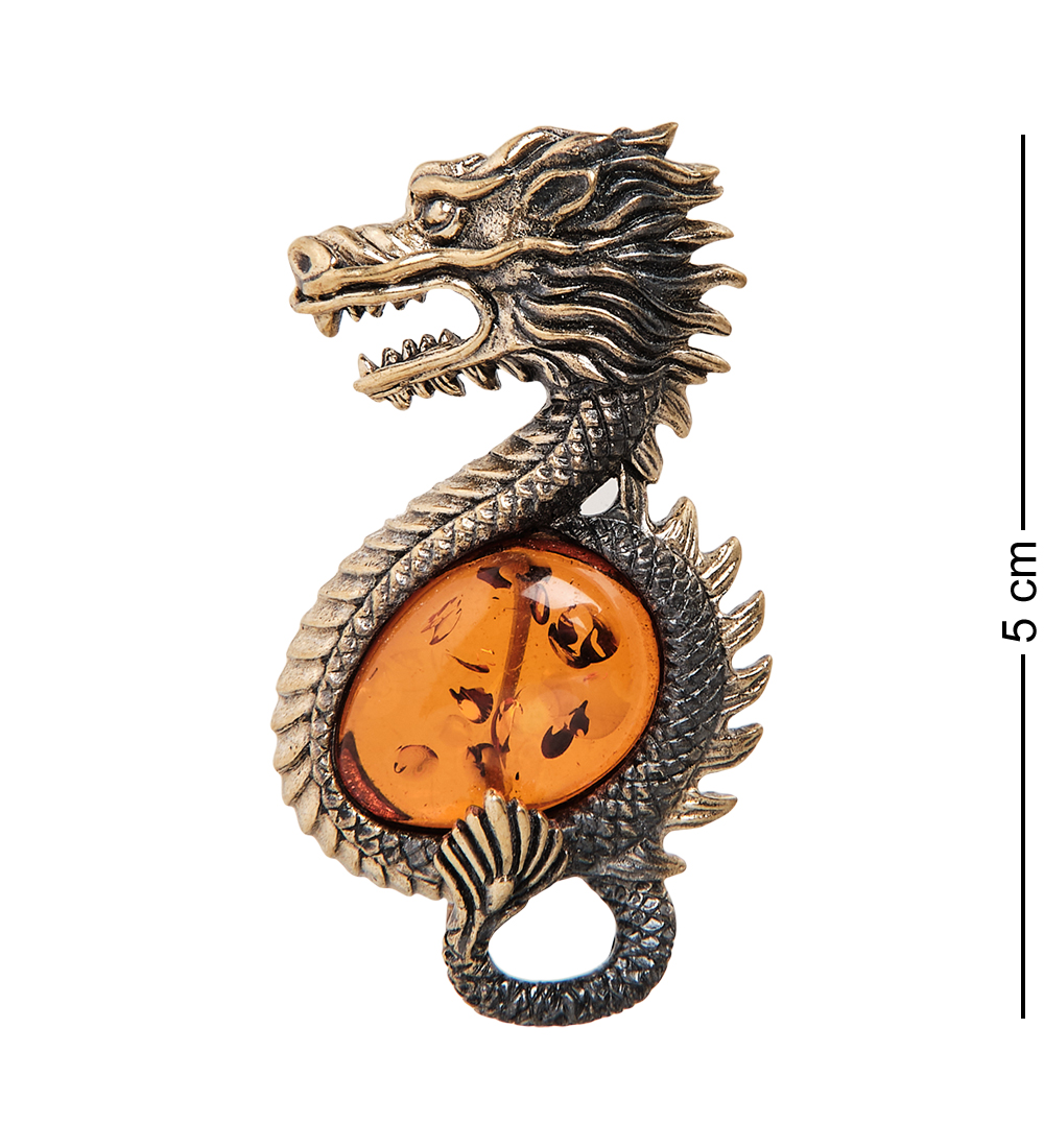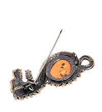 AM-2324 Брошь «Дракон» (латунь, янтарь)