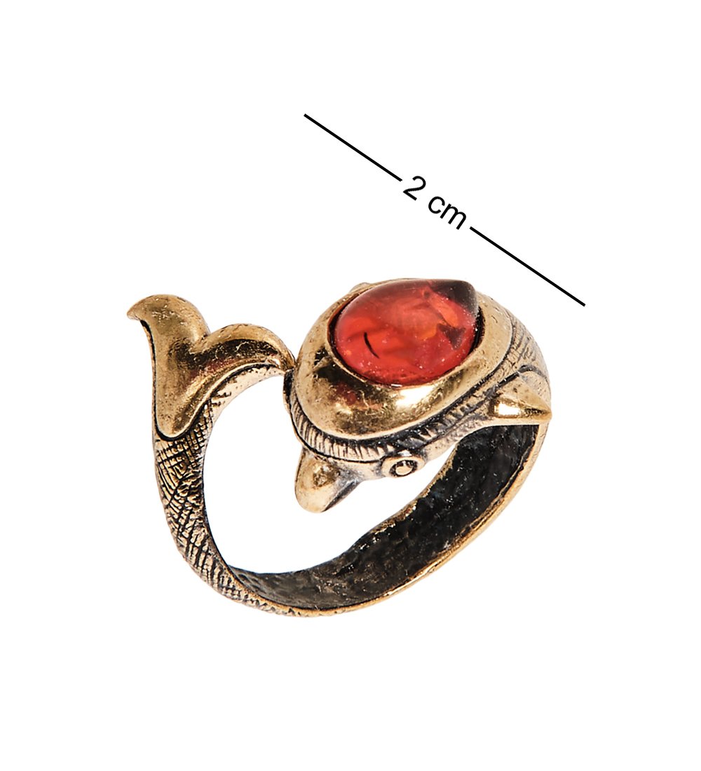 AM-2434 Кольцо «Дельфин капля» (латунь, янтарь)
