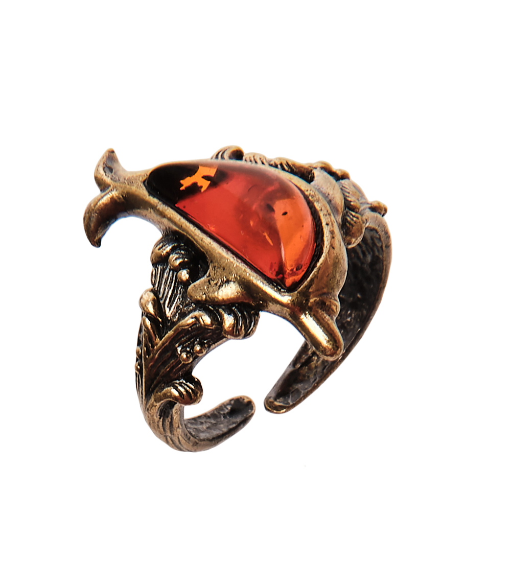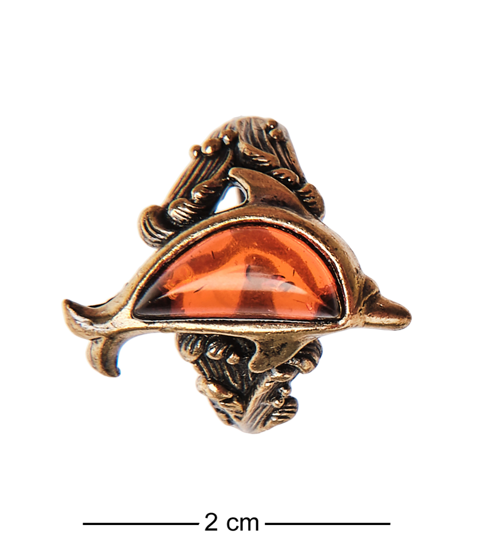 AM-2668 Кольцо «Дельфинчик» (латунь, янтарь)